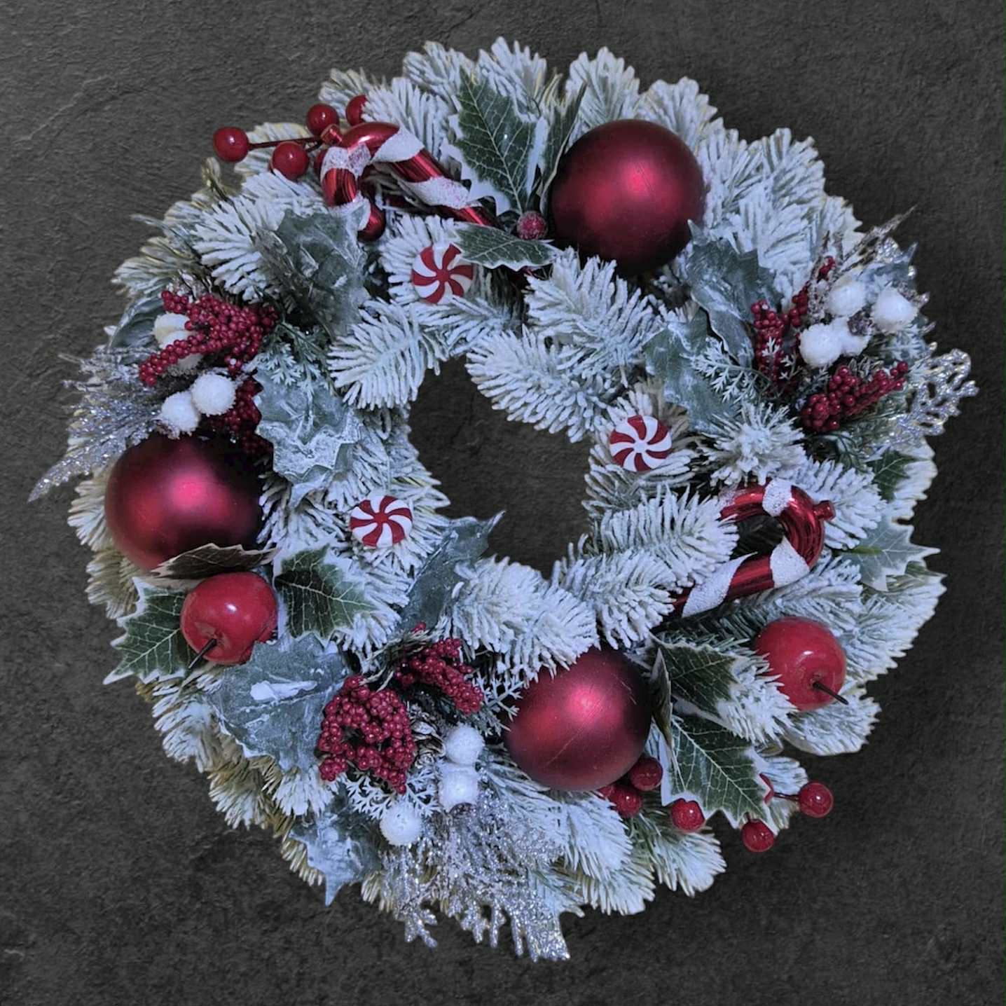 Coroniță de Crăciun de 40 cm, în culorile roșu și alb.